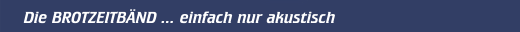 Als spaßbringenden Kontrast zu unseren Rockband-Aktivitäten haben wir uns die BROTZEITBÄND ausgedacht, mit Liedern von Hans Albers bis ZZ Top ... dies ist nur eine sehr kleine Übertreibung, denn wir sind wirklich berüchtigt für unser abwechslungsreiches Repertoire